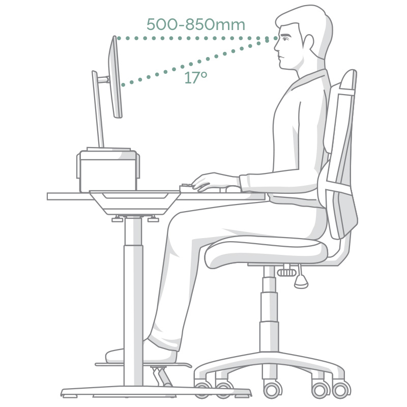 Si le haut de votre écran n’est pas au même niveau que vos yeux, votre moniteur doit être surélevé ou abaissé afin d’être au bon niveau. Un support moniteur ou un bras porte-écran peut vous aider.