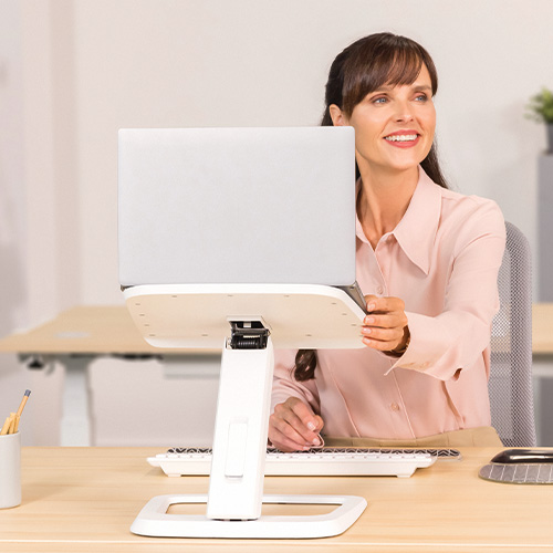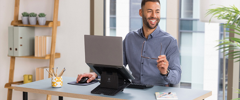 Les solutions ergonomiques portables, telles que la mallette de rangement et le support d’ordinateur portable pliable, permettent aux employés de bénéficier d’une configuration ergonomique plus confortable, même lorsqu’ils sont en déplacement. Il n’a jamais été aussi facile pour les employeurs de fournir le meilleur environnement ergonomique à leurs collègues et de bénéficier d’un personnel en meilleure santé, plus heureux et plus productif.