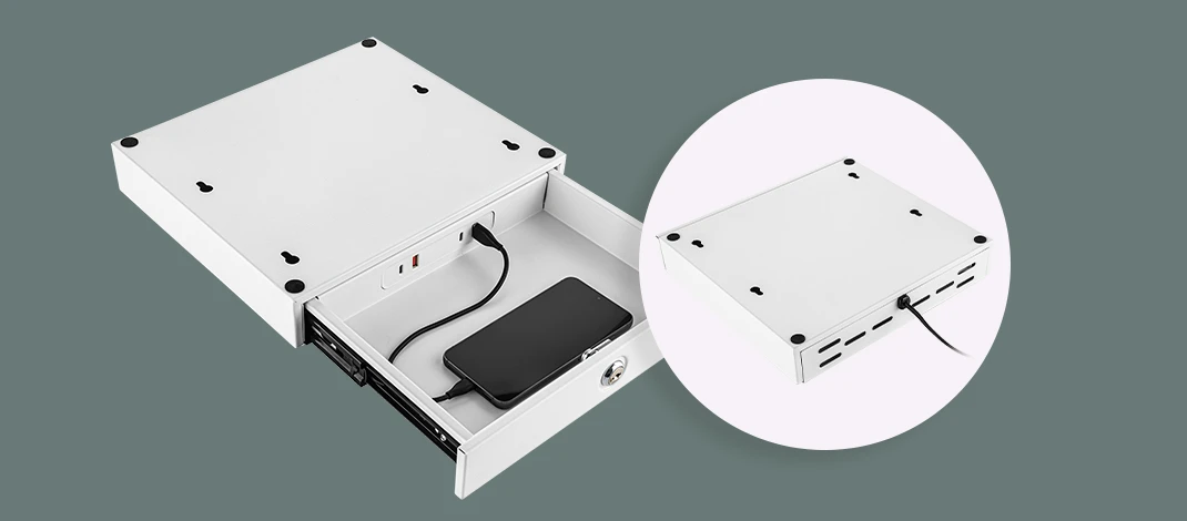 Opladen en verbergen met deze USB-oplaadladen. Praktische oplossingen bieden afsluitbare opbergruimte terwijl ze mobiele apparaten van stroom voorzien.