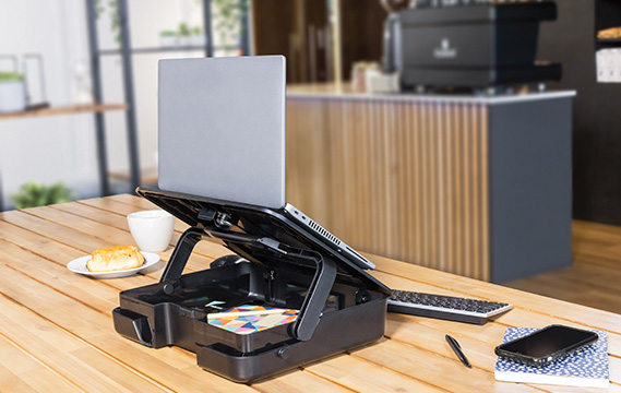 A 2 in 1 design, the laptop carry case with in-built laptop riser with 5 height settings is the perfect solution for ergonomic working. The carry case includes a carry handle, optional shoulder strap and internal straps for ultimate portability, whilst keeping your belongings safe. 100% recyclable through our take-back program and 5-year limited warranty.