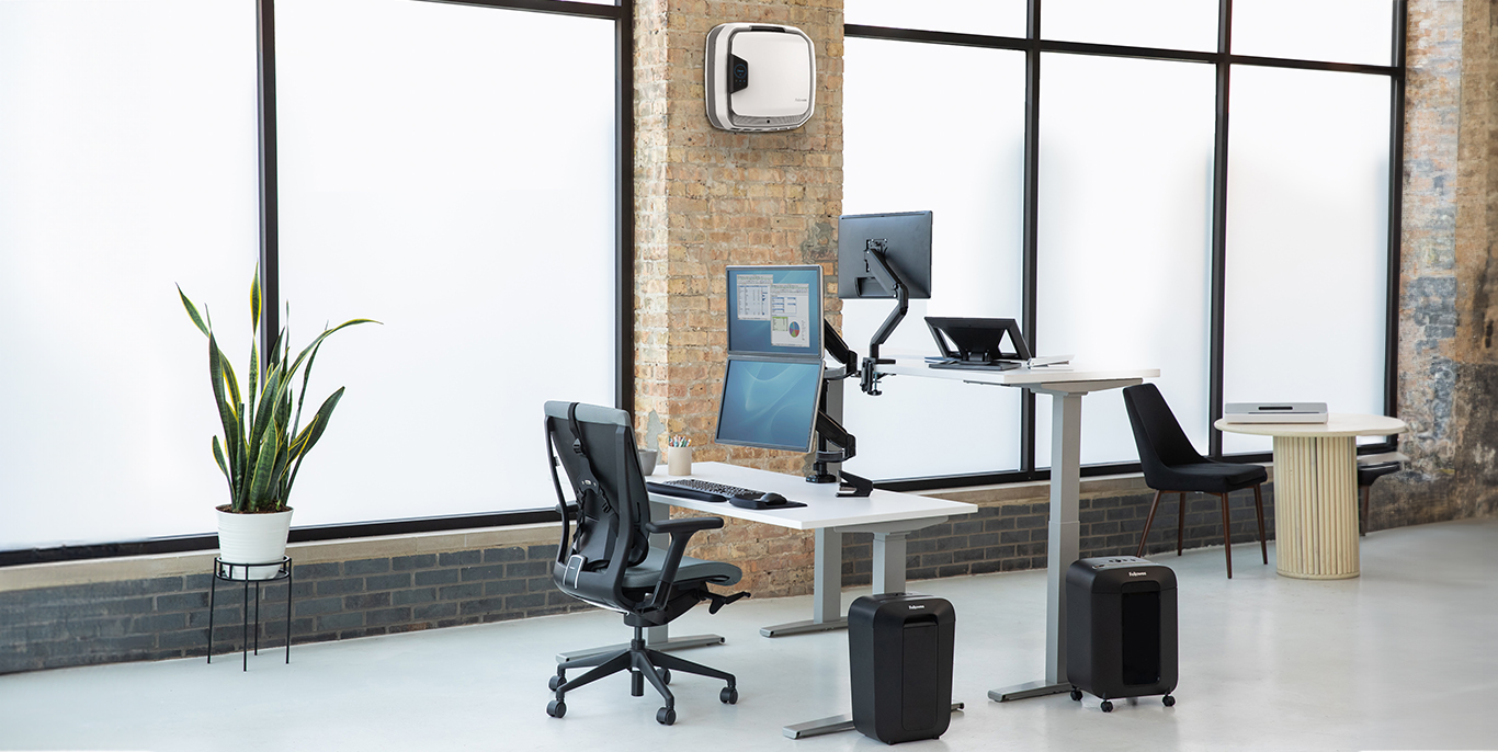 Travailler dur ne devrait pas être pénible pour le corps. En concevant des produits qui utilisent les dernières recherches en matière de gestion de la qualité de l’air, d’ergonomie et de mécanique du corps, Fellowes contribue à votre bien-être, à votre confort et à votre concentration pour que vous puissiez donner le meilleur de vous-même.
