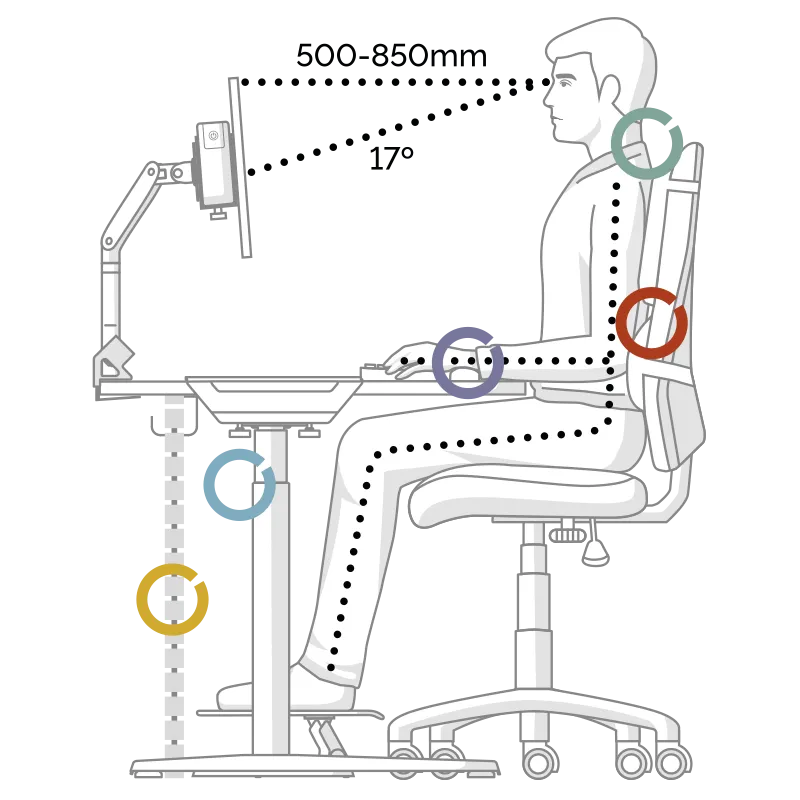 Ob im Sitzen oder im Stehen, achten Sie auf die richtige ergonomische Haltung und machen Sie regelmäßig Pausen.