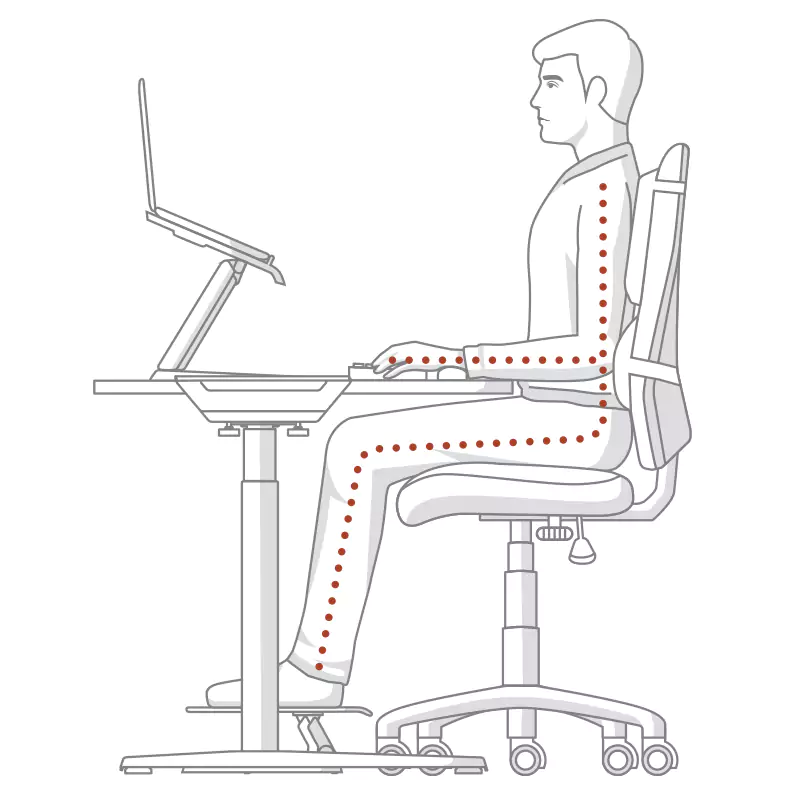 Sitzen Sie aufrecht mit entspannten Schultern und halten Sie den Kontakt zwischen Ihrem Rücken und dem Stuhl.
