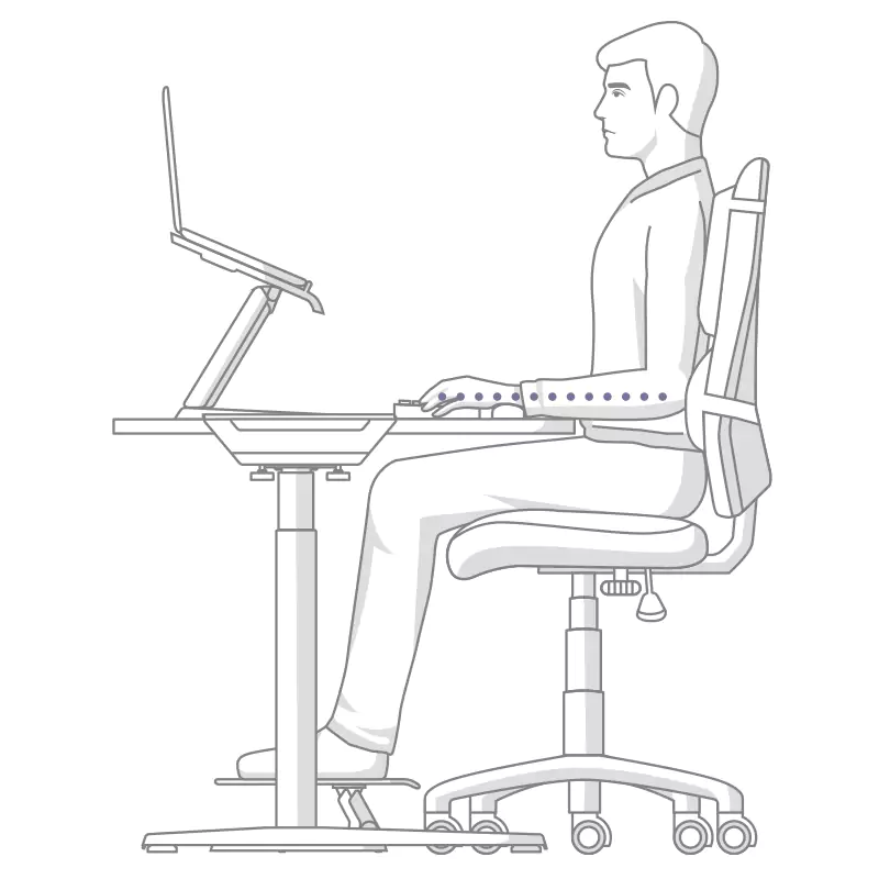 Halten Sie die Unterarme parallel zur Tischplatte und die Handgelenke in einer neutralen Haltung.