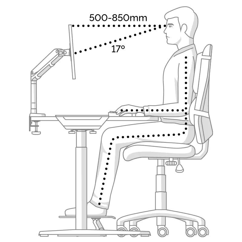 Placez votre écran et vos documents à distance des bras pour éviter de fatiguer vos yeux et votre cou.