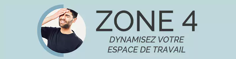 L'Approche 4 Zones® de Fellowes décompose les principaux aspects du poste de travail en 4 sections appelées « zones ».