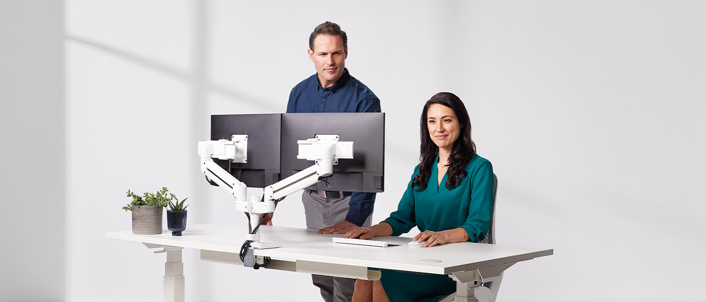 Entdecken Sie die perfekte Harmonie aus dynamischem Design und hervorragender Ergonomie der Tallo Serie. Mehrere Monitore lassen sich dank Slider Design nahtlos ausrichten. Die vielfältigen Konfigurationen passen sich ganz Ihrem Arbeitsstil an. Und mit dem Flexcharge Hub Upgrade mit Qi Ladepad und USB Anschluss bleiben Sie stets verbunden.