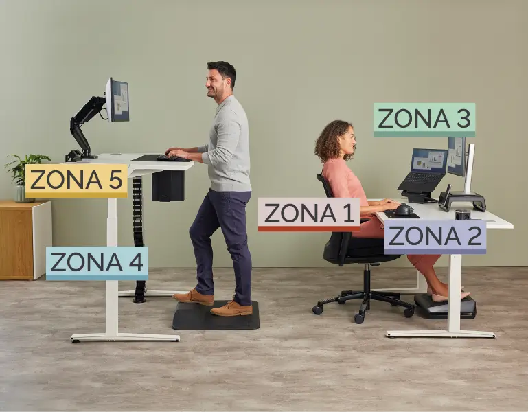 Cada Zona ofrece consejos y recomendaciones de productos para trabajar ergonómicamente y crear un espacio de trabajo más saludable y feliz.