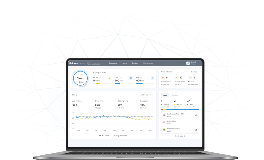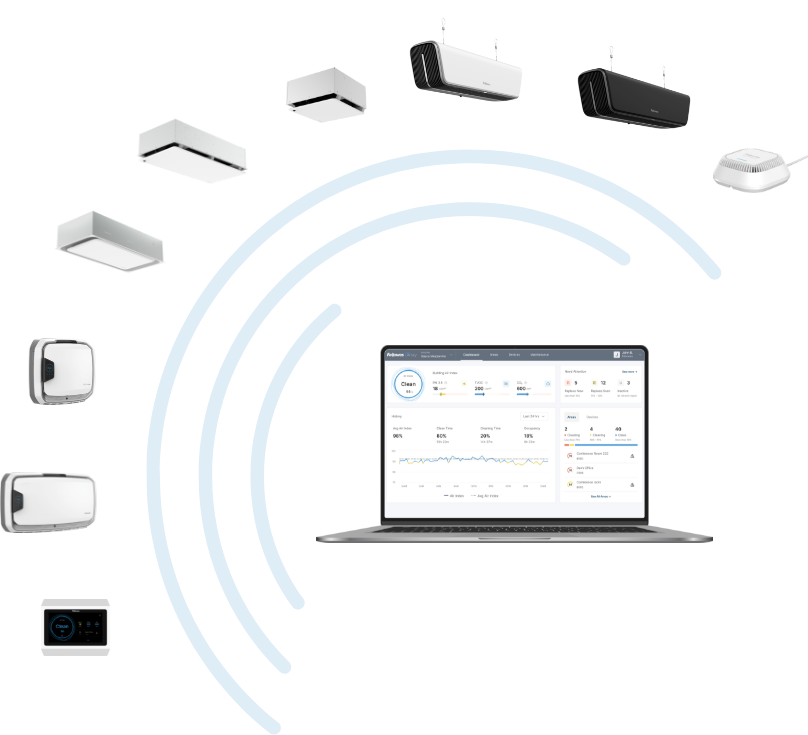 En tant que système de qualité de l’air en réseau unique en son genre, Array est modulable à l’infini pour s’adapter à la structure de votre bâtiment, à vos effectifs et à vos besoins en matière de purification de l’air.