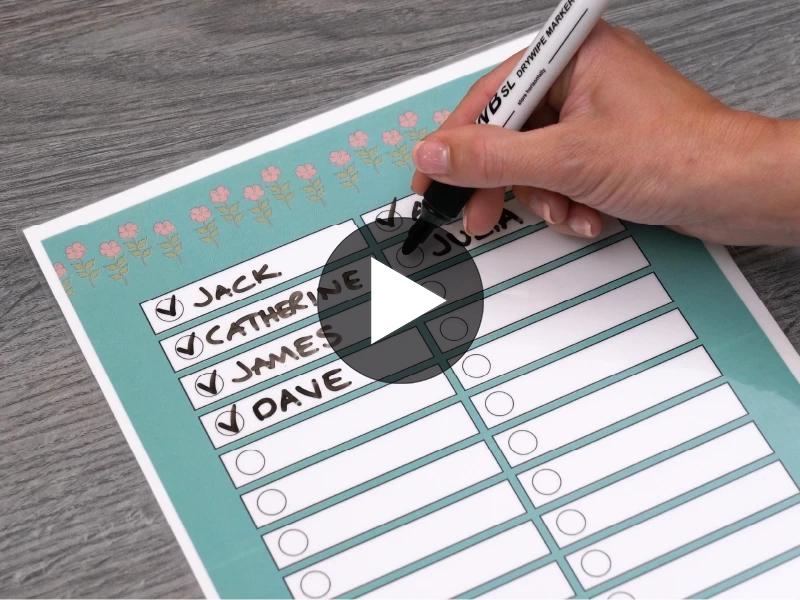 Gebruik whiteboardmarkers voor notities of checklists—schrijf, veeg uit en gebruik opnieuw.