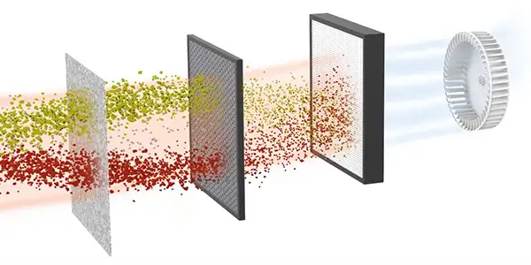 Activated carbon filters adsorb gases, odours and volatile organic compounds (VOCs) from indoor air.