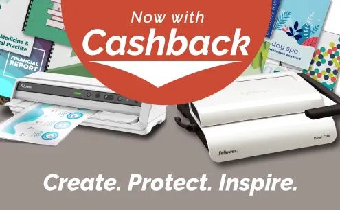 Purchase a participating Fellowes binder or laminator and receive cashback—saving made simple.