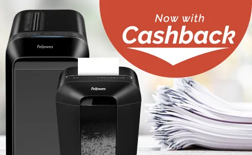 Purchase a participating Fellowes paper shredder and receive cashback—saving made simple.