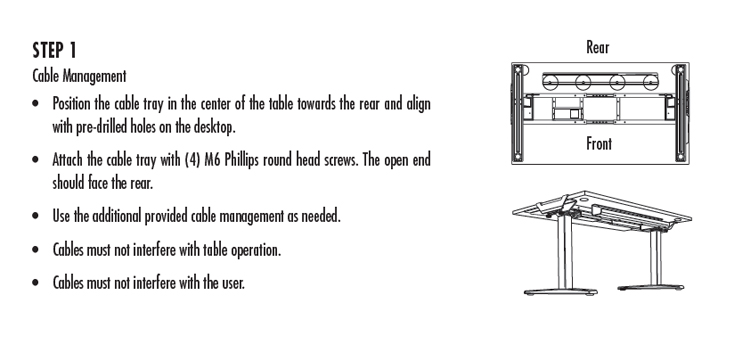 This will depend on your setup. If any of your cables are routing to the floor be sure that they can accommodate the full range of motion up to 1260mm. Refer to Accessory Installation Step 1 in the instruction manual.