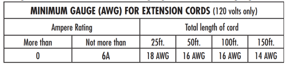 rating. If in doubt, use the next heavier gauge. The smaller the gauge number, the heavier the cord